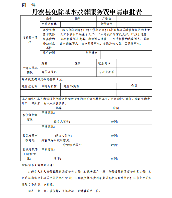 附件:丹寨县免除基本殡葬服务费申请审批表